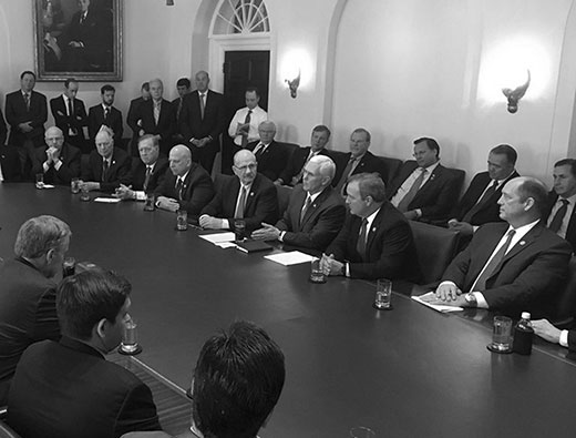 If ever there was an image to make women cringe, it’s this one. If ever there was an image to convince women in America that we need the Equal Rights Amendment, it’s this image proudly sent out on Twitter by the White House. The photo shows Vice President Mike Pence meeting with the House Freedom Caucus, in a session closed to the press, to hash out cuts in the American Health Care Act stripping essential insurance coverage for women’s health care.