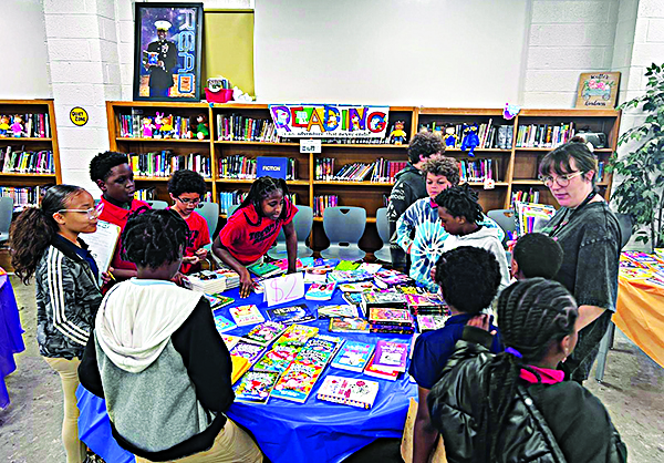 Students pick out a book for themselves at the fifth annual event. HSS helped the children purchase a book for themselves. The group volunteers in one-on-one reading sessions, too.