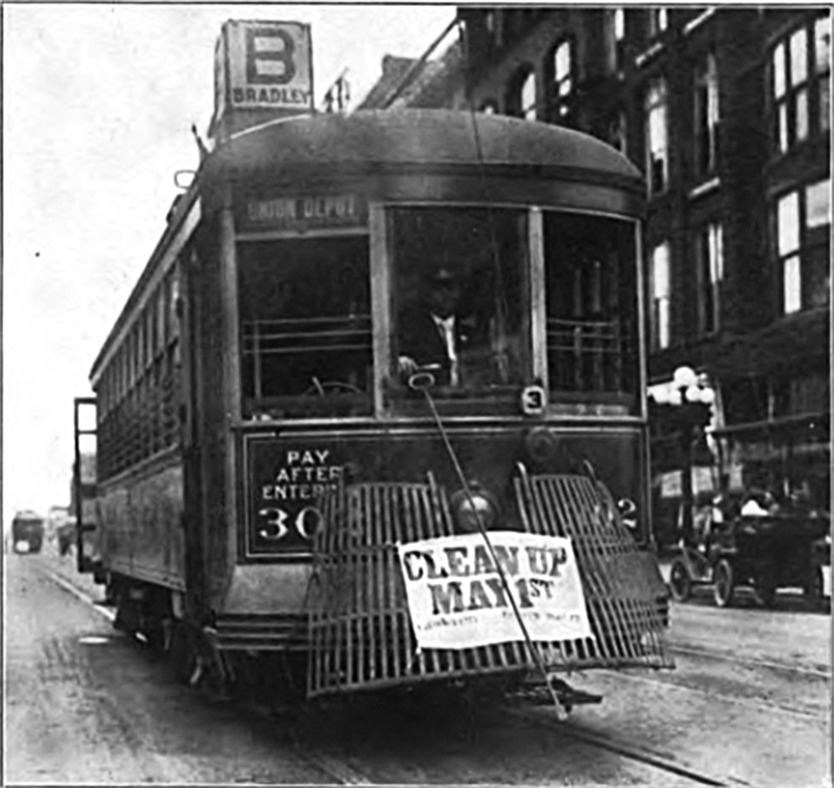A photo of a Peoria electric streetcar, circa 1915. The author’s ancestor was superintendent of the Peoria Railway Company