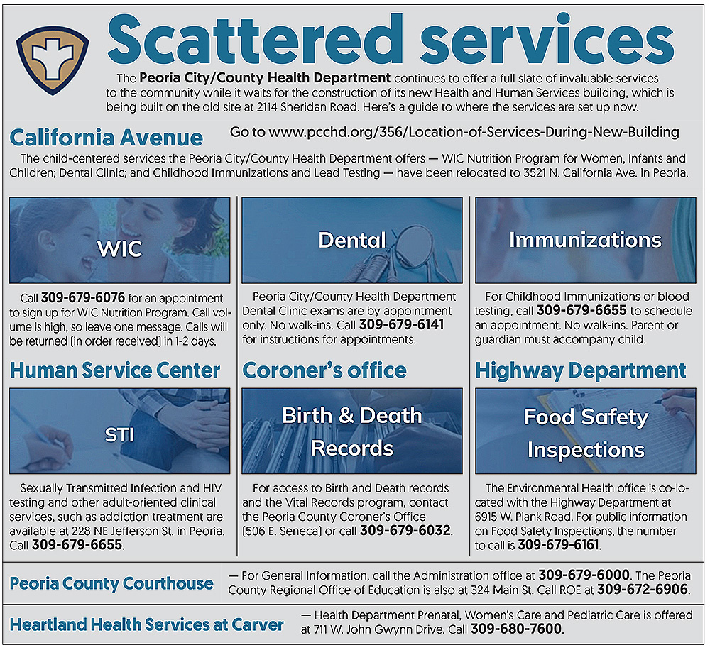 It’s been more than a year since the demolition of the old Peoria City/County Health Department building scattered its services. The Health Department, though, has taken root at various locations as it awaits the construction of a new Health and Human Services building.