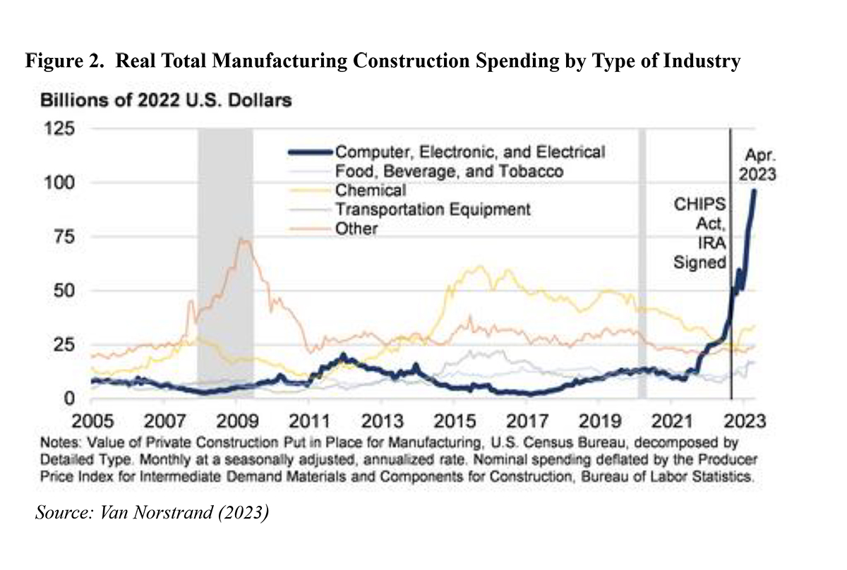 - Van Norstrand, Eric, et al. 2023 (Jun 27). Unpacking the Boom in US Construction of Manufacturing Facilities. U.S. Treasury; https://home.treasury.gov/news/featured-stories/unpacking-the-boom-in-us-construction-of-manufacturing-facilities