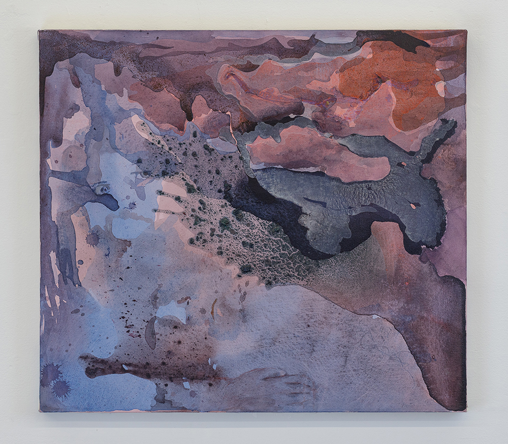 Even though Hamzeh does not consider herself a figure painter, many of her paintings have a strong human presence. Upon first impression, Hamzeh’s “Delightful Scars” and “Welcoming in the Front Door” series seem ethereal with their tranquil colors of soft, meditative acrylic washes. On closer inspection, subtle clues of an underlying duality exist within Hamzeh’s alluring stained canvases.