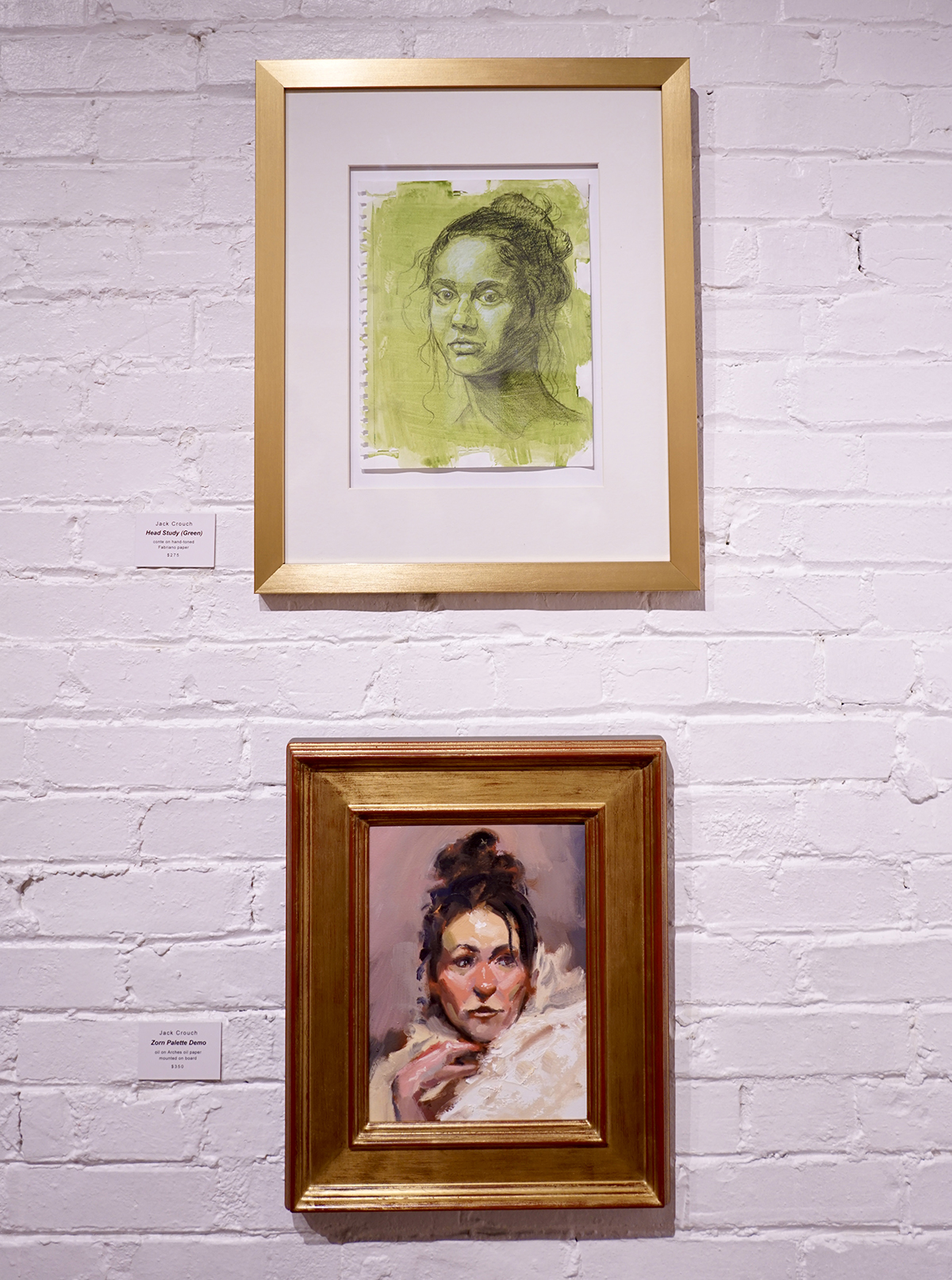 The CAC exhibition had numerous small portrait studies in the à la prima style. This way of working is directly painted with broad strokes of luscious hues composing structure through planes of color. He offers a tactile sense of form in space and the resulting emotion presented in facial expression. These studies are preparatory for his much larger canvases and serve as direct demonstrations for his students.