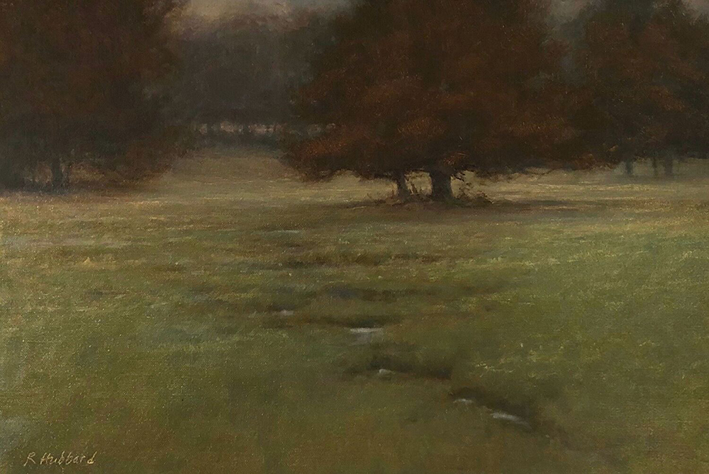 In line with the Tonalist art movement, Hubbard’s paintings evoke a spirit of promise and contemplation. Using soft brushwork of closely related, muted hues, the artist creates a harmonist world within reach.