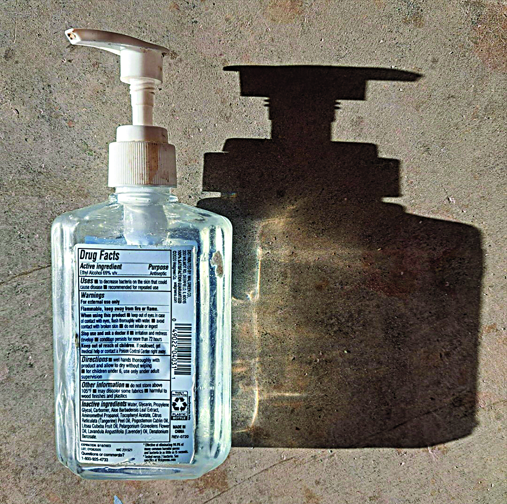 The influences that we live through often pique our imagination. Barb Hoffman recalls, “The disinfectant pump was a critical part of our lives. Now that the crisis is in the past, it wants to be enshrined for saving us.” A simple functional bottle resonated with an energy that went beyond its obvious usefulness, beyond the label, and the literal disinfectant. Brilliantly, Hoffman has been able to distill those moments into reflection and resolution.