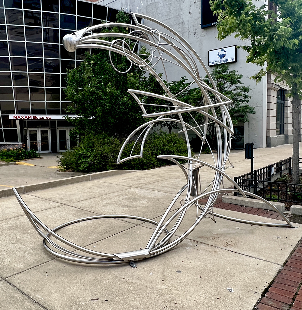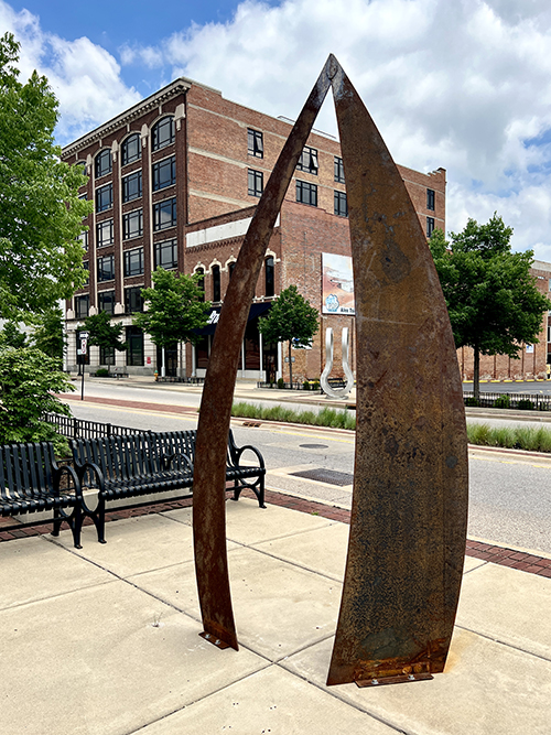 The sculptures are displayed on both sides of Washington Street, from the Peoria Riverfront Museum to the Bob Michel Bridge. A range of styles, materials, and construction provides an exciting dialogue as you move from one work to another. Our tour group had varying views and comments about being more interested in some pieces than others. I enjoyed listening to the discussions and added my insights too.