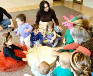 Classes like Family Time, for children newborn and up, create a schoolhouse approach to learning and singing through basic music, clapping, and singing. The Village class from newborn to 1 ½ helps children learn the words to lullabies and nursery rhymes, while the educator explains the importance of adding to daily practice with these songs as they develop. Our Time is a great class that takes things a step further introducing more words, motions, games, and songs to move towards independence.