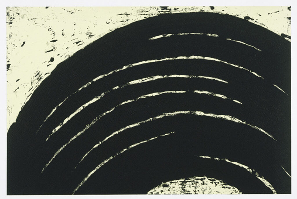 Look at Richard Serra’s print, “Paths and Edges,” a bold, richly textured semi-circular image with detritus and ragged lines, and then listen to Marc’s selection of singer Adele’s song “Rolling in the Deep.” As the DJ states, “The dark layered arcs seem to have a downslope rolling effect that continues beyond the paper. The backdrop of the well-known Adele song just fits.”