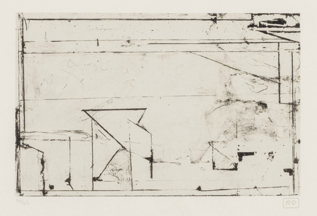 Richard Diebenkorn’s lithograph is from the last series of prints he completed at Gemini, G.E.L. before he died. His signature Ocean Park-style of hard edge lines, erased with ghostly pentimento shadows and evidence of change gives us a space divided, united and, somehow, creatively challenges us to determine our own escape.