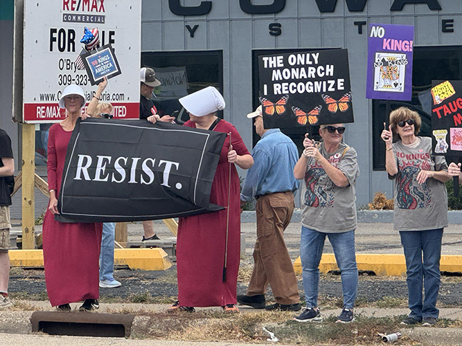 Upwards of 5,000 people lined both sides of War Memorial Drive on Oct. 18 for the No Kings 2.0 Rally and Protest. Participants were gathered 10-15 deep in front of the fields at Peoria Stadium all the way down past Alwan & Sons Meat Market (more on that later) to Illinois Avenue.