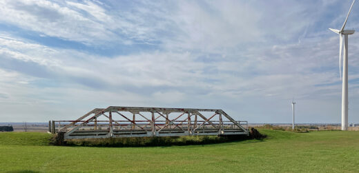 The final resting area of a historic pony truss bridge is a very interesting travel wayside: It now sits at the top of two separate watersheds. … Rain falling east of the bridge will wind its way to the Illinois River through Crow Creek south of Henry. Rain falling west will meander to the Illinois via the Spoon River near Havana.
