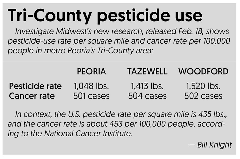 News Pesticide use in Tri-County area double national rate, cancer high by Bill Knight • April 2, 2026 • Comments Off on Pesticide use in Tri-County area double national rate, cancer high Chemical trespass: Pesticide use on Tri-County farms is eight times more than the national average and cancer rate in the area is 10 times higher as residue blows through our parks and schools For more information on pesticide-use rates, go to investigatemidwest.org