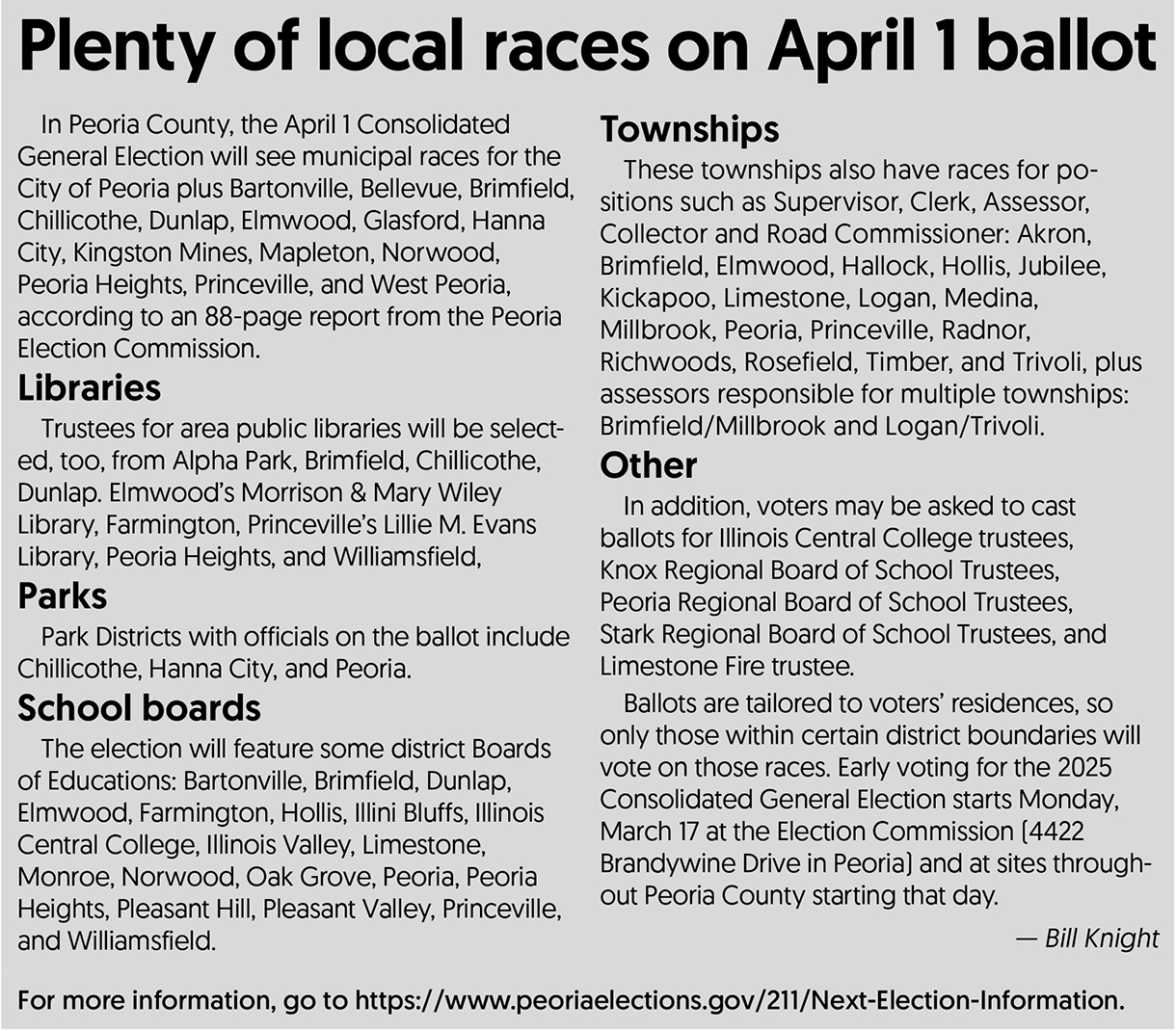 That’s troubling to the League of Women Voters of Greater Peoria, which recently posted, “These elections will determine the future of the City. People elected will make decisions on how our tax money is spent.